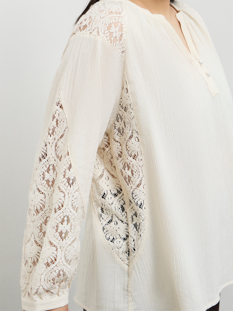 Gia Cream Lace Detailed Cotton Blouse