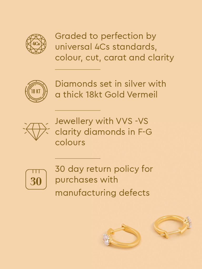 Elevate your style with these classic hoop solitaire earrings featuring lab diamond accents. Made with gold vermeil, they offer a timeless look that transitions effortlessly from day to night.