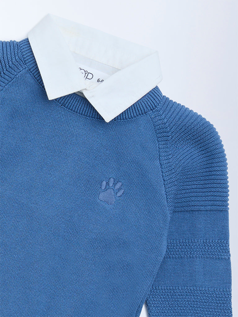 HOP Baby Blue Knit-Textured Cotton Sweater