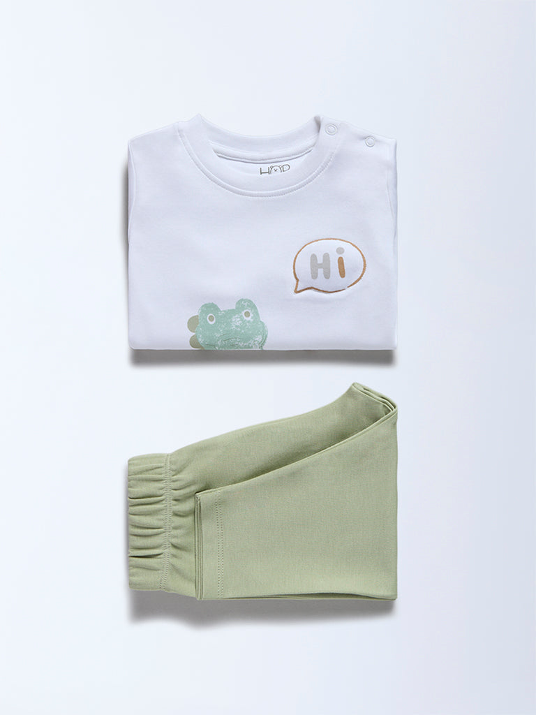 HOP Baby Multicolour Dinosaur-Themed Cotton T-Shirt and Pants Set - Exclusive