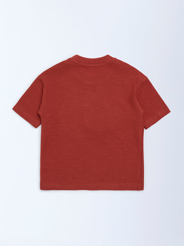 HOP Kids Boys Rust Embroidered Cotton T-Shirt