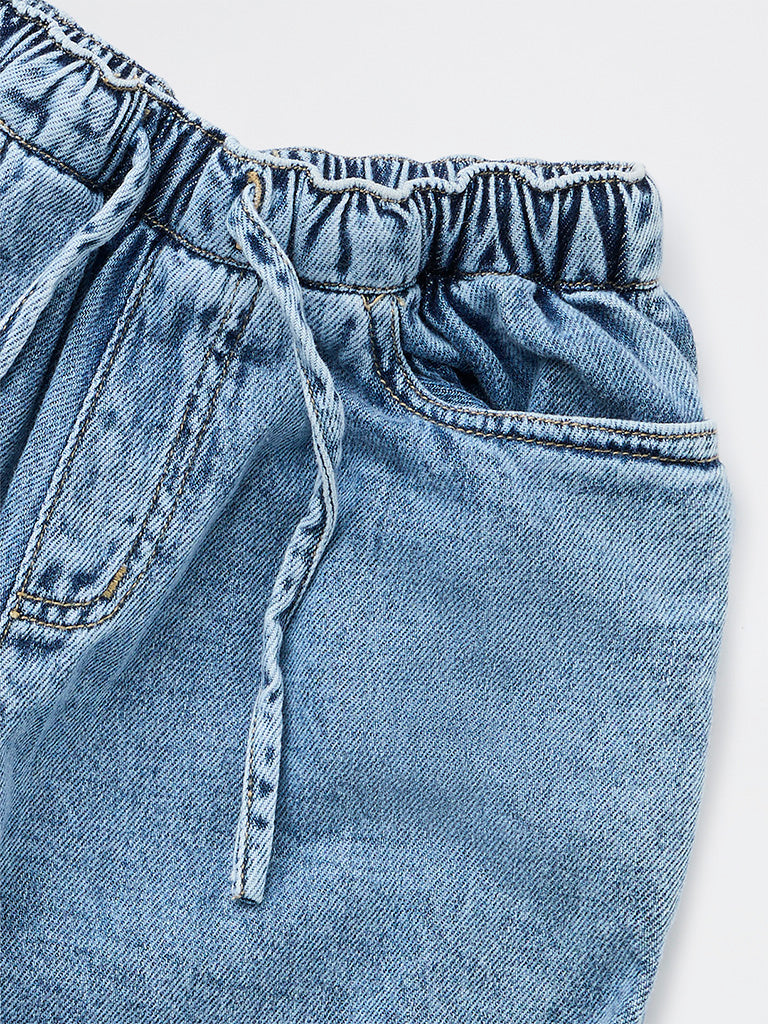 HOP Kids introduces these light blue washed denim jeans for infants, designed for active everyday wear. Crafted from premium denim fabric, they offer durability, comfort and a soft, snug feel on delicate skin. The elasticated waistline with adjustable drawstrings ensures a convenient fit, while elasticated hems provide a secure finish, allowing little ones to move with ease.