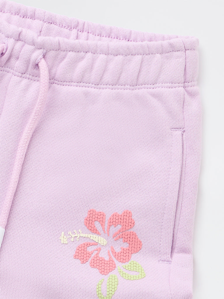 HOP Kids Girls Lilac Floral Design High-Rise Cotton Shorts