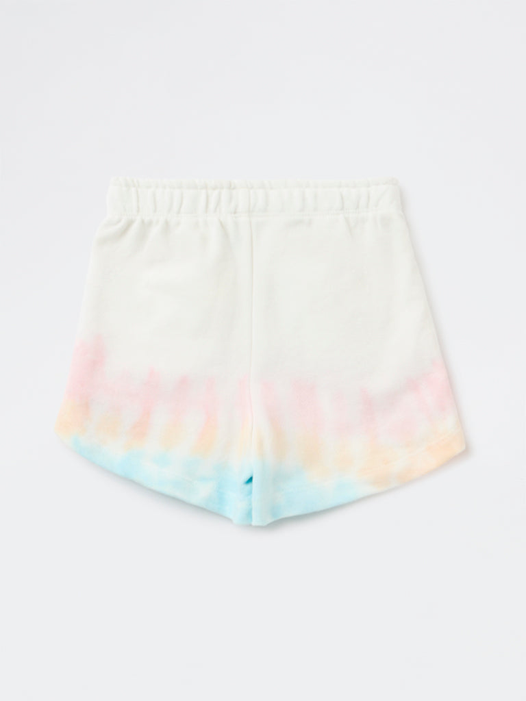 HOP Kids Girls Off-White Tie-Dye Pattern High-Rise Cotton Shorts
