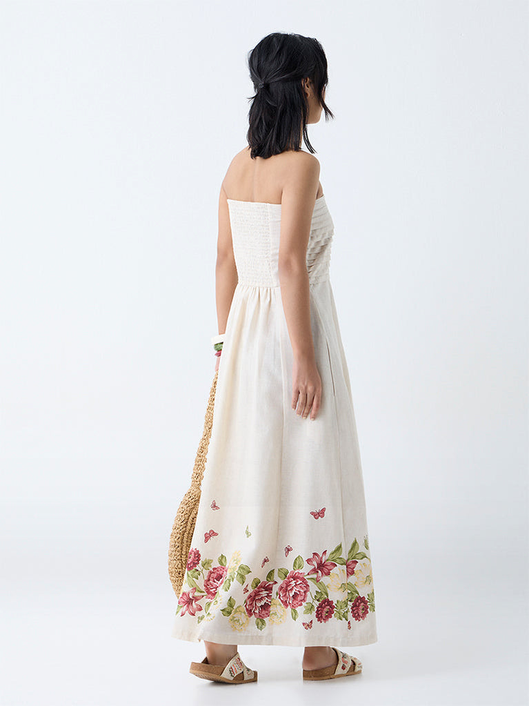 Bombay Paisley Off-White Floral Design Cotton Tube Dress