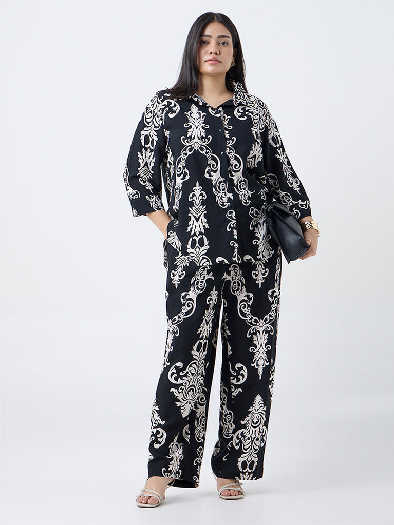 This black shirt by Gia is defined by an all-over print that lends the classic silhouette a contemporary edge. Made from a breathable fabric, it features a collared neckline, a button-front placket and three-quarter sleeves that come together to create a polished, easy-to-style essential for everyday wear.