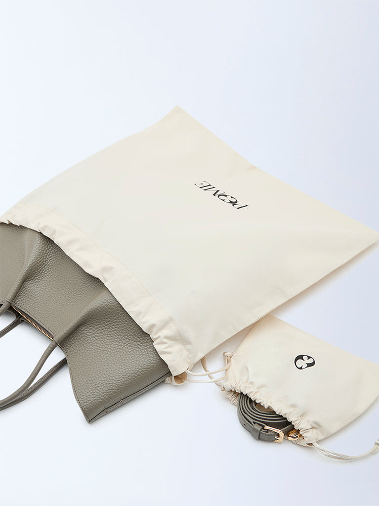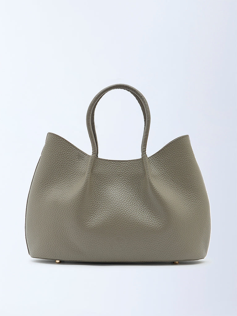 Details•Stone grey grain leather•Quality lining•Detachable shoulder strap with pouch•Internal gold zip and slip pockets•Protective gold feet