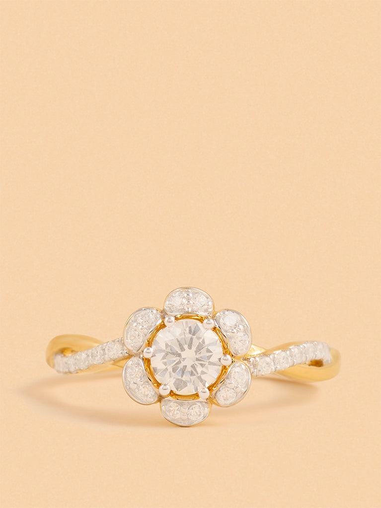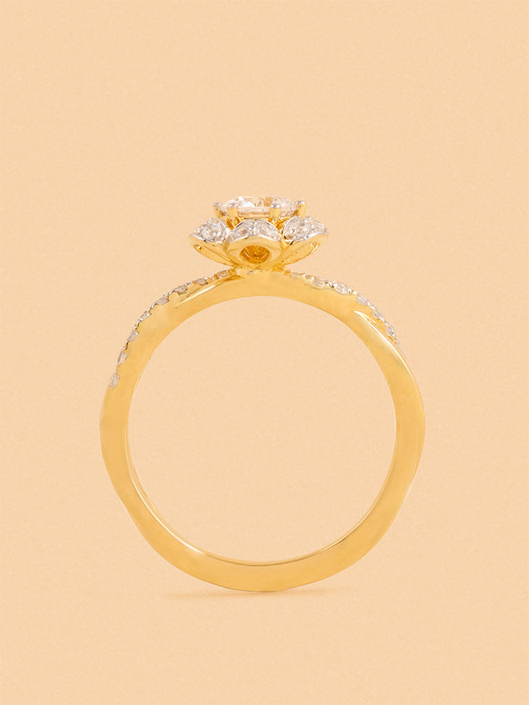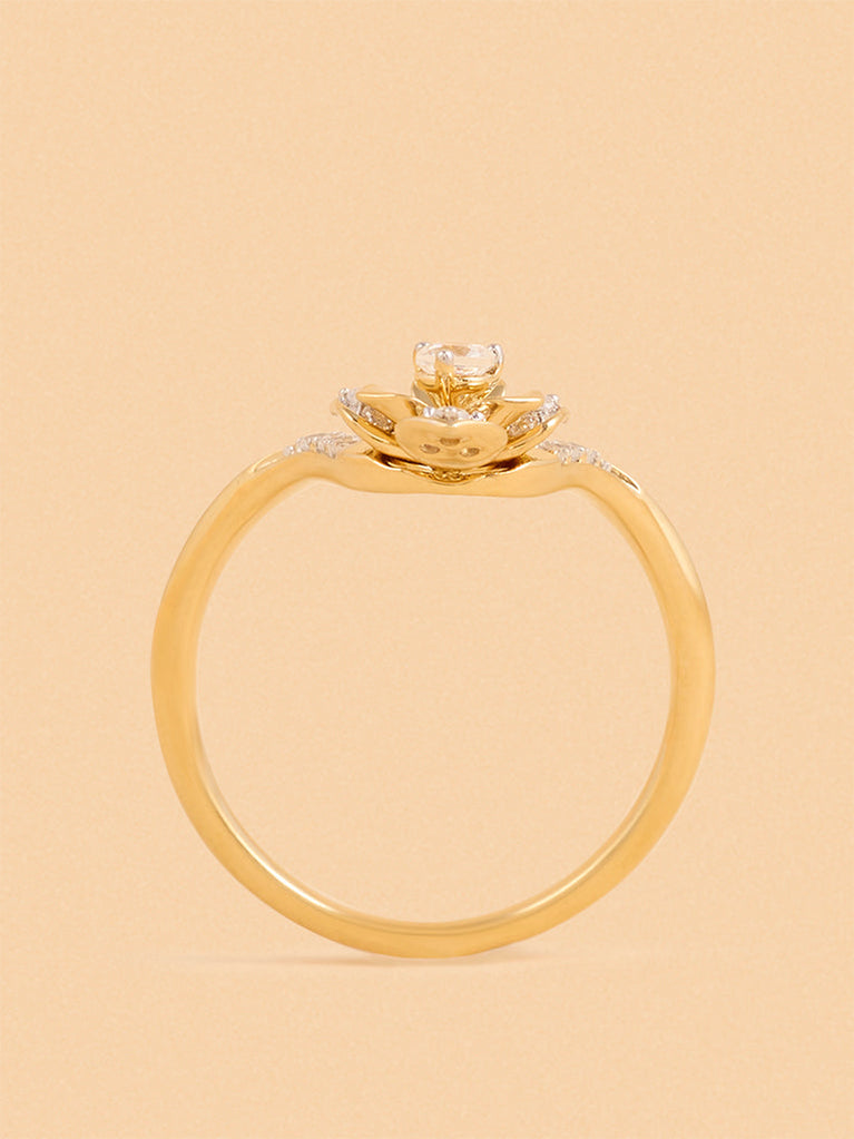 Gold Floral Solitaire Ring