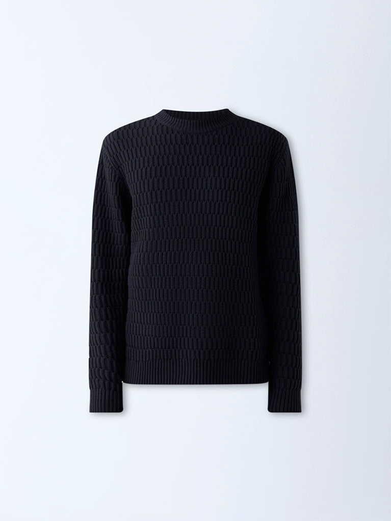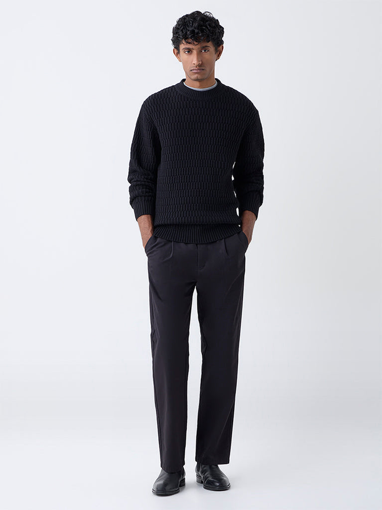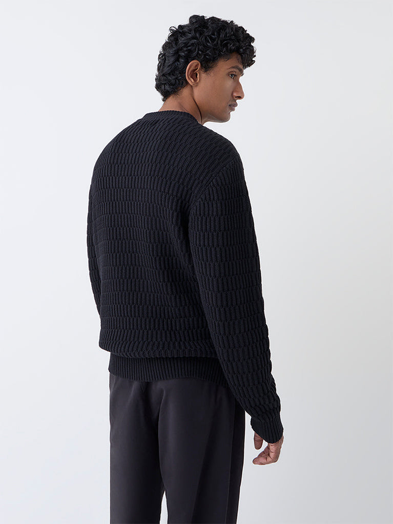 Ascot Black Knit-Textured Relaxed-Fit Cotton Sweater