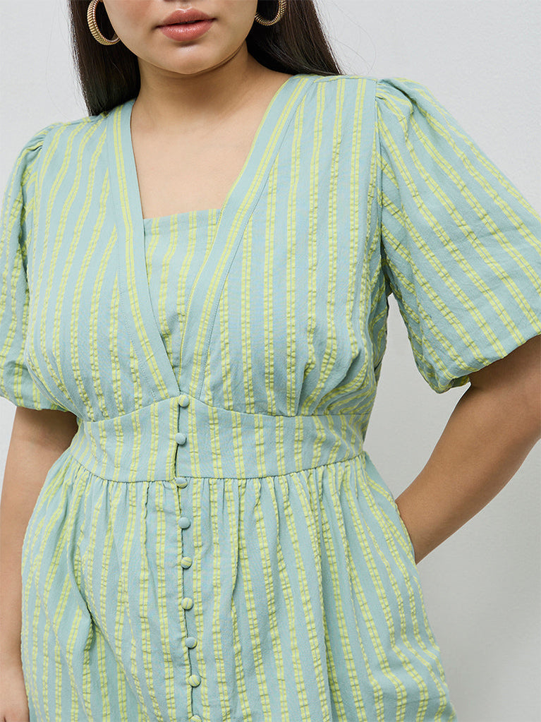 Gia Mint Seersucker Striped Cotton A-Line Dress