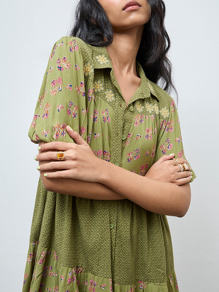 Bombay Paisley Green Floral Design Shirt Dress