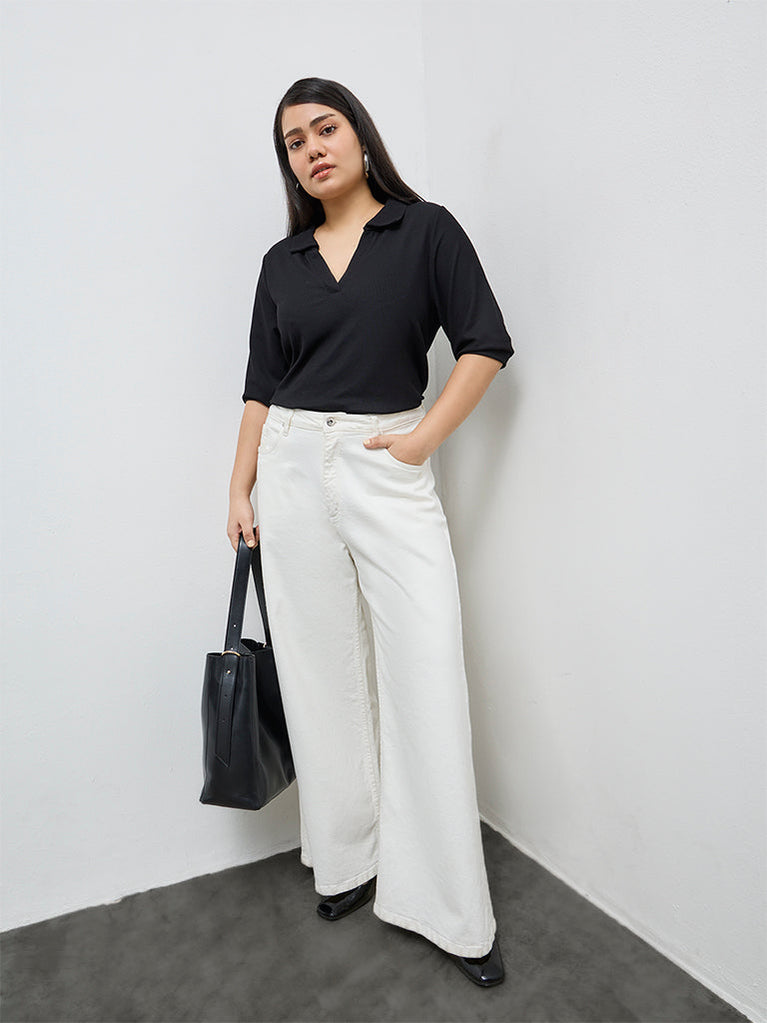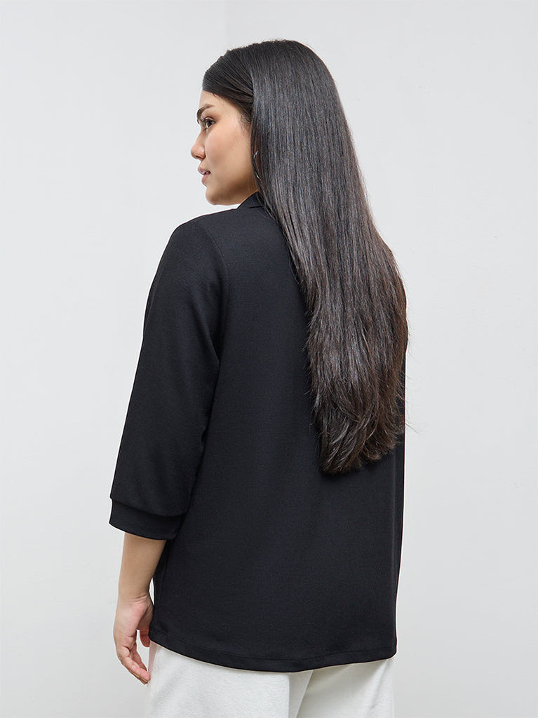 Lean into modern simplicity with this black top from Gia, crafted from a ribbed-textured fabric that adds depth to a classic silhouette. Designed with a flattering polo-neck collar and 3/4th sleeves, it works seamlessly for everyday layering or standalone wear.