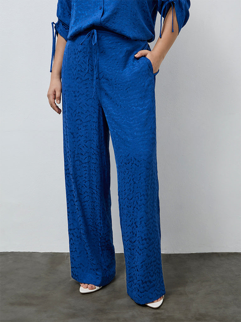 Gia Blue Self-Textured High-Rise Pants