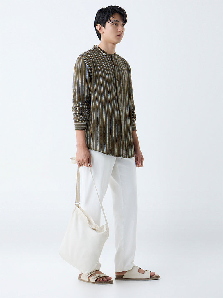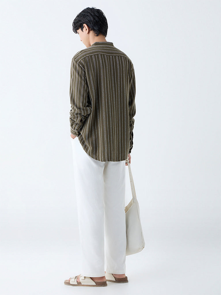 ETA Olive Striped Relaxed-Fit Cotton Shirt