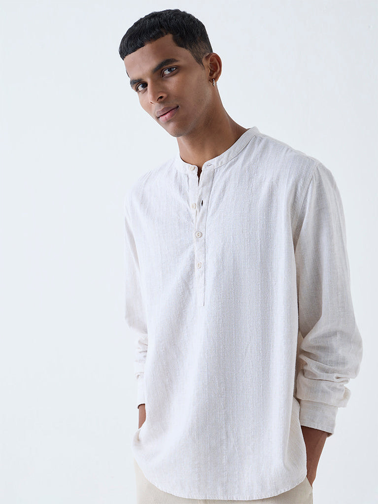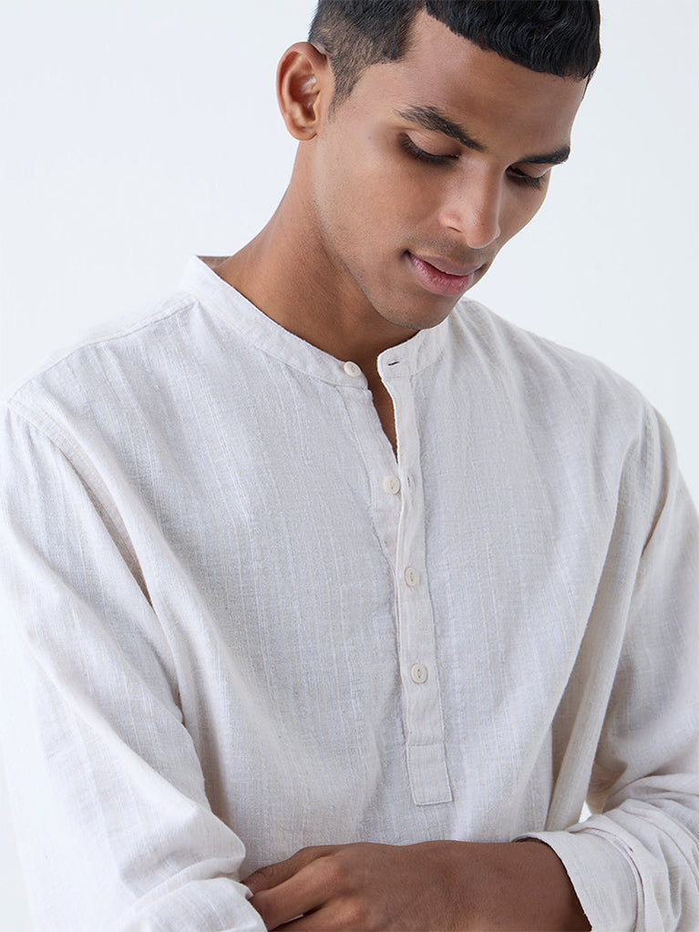 ETA Light Beige Solid Relaxed-Fit Cotton Shirt