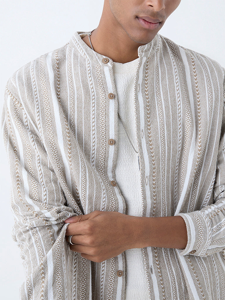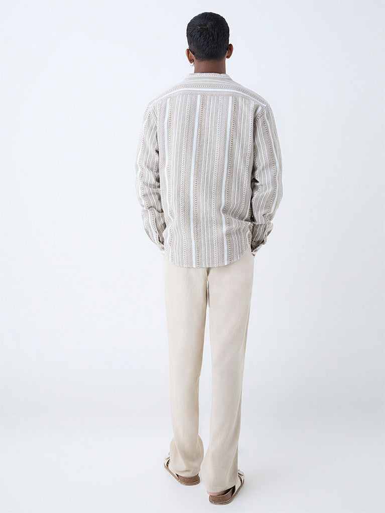 ETA Taupe Stripe Pattern Relaxed-Fit Cotton Shirt