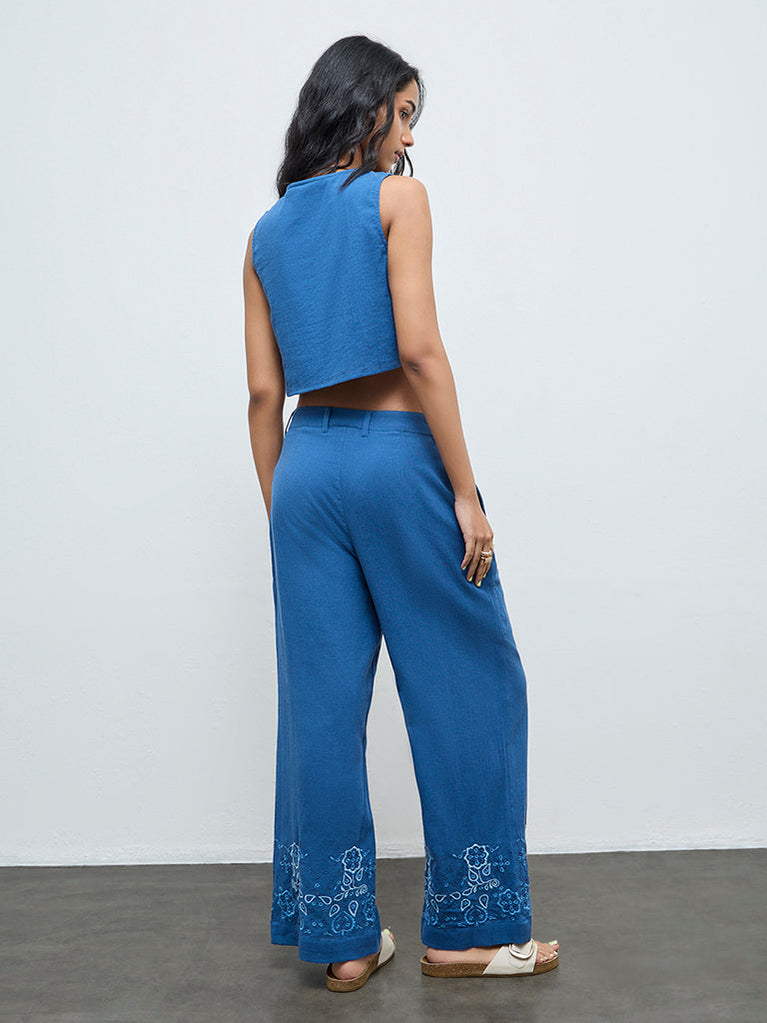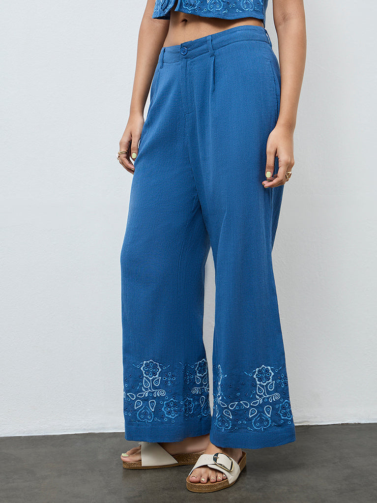 Bombay Paisley Blue Floral Embroidered Cotton Palazzos