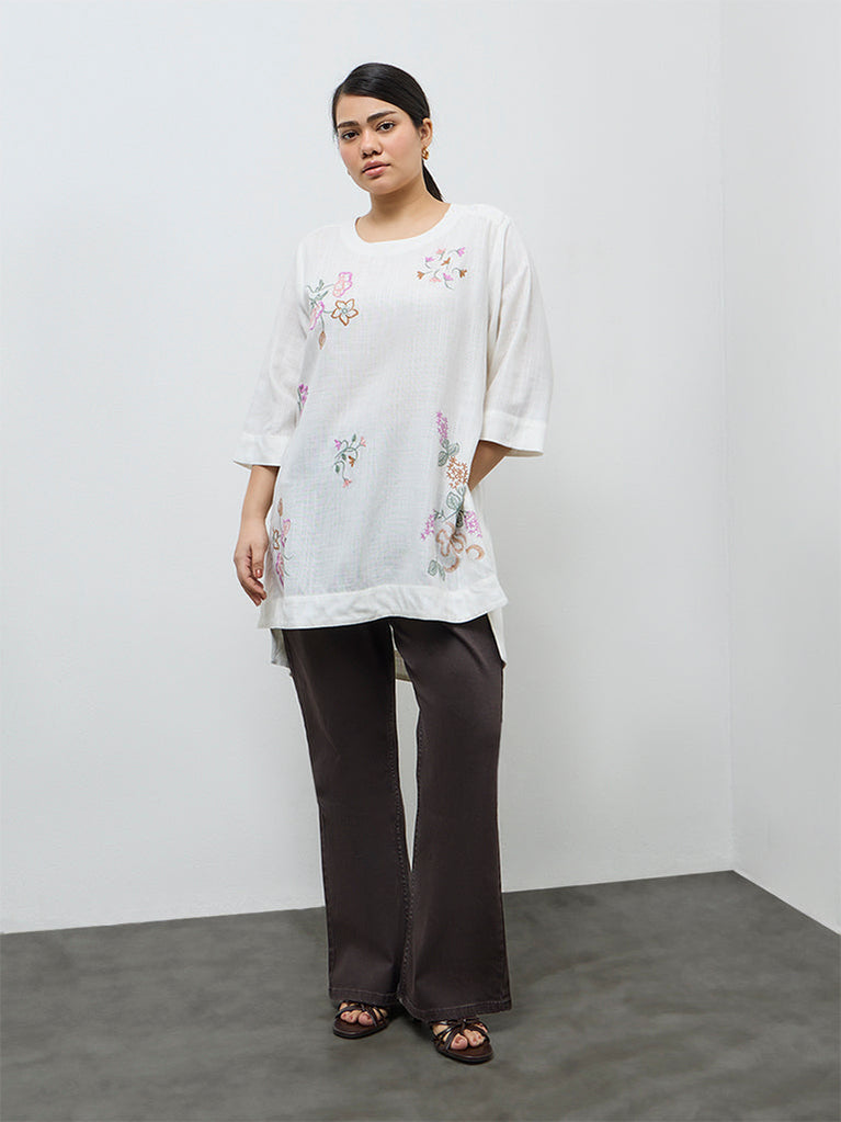 Diza White Floral Embroidered High-Low Tunic