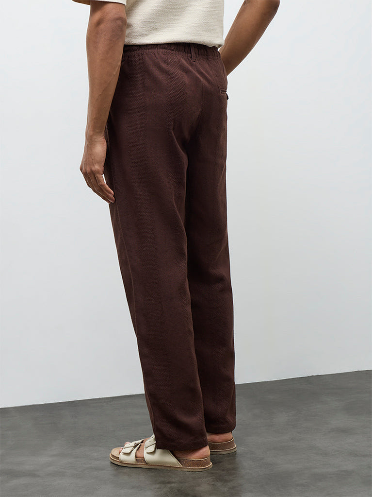 ETA Dark Brown Textured Relaxed-Fit Mid-Rise Cotton Chinos