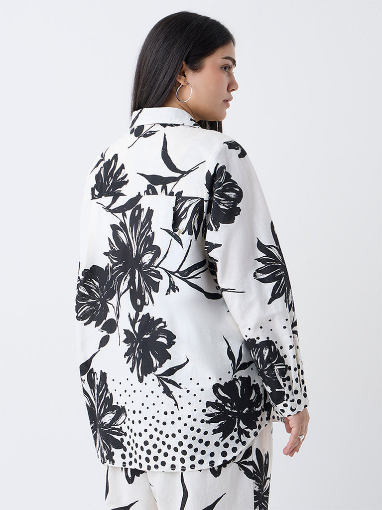 Gia presents this black and cream shirt enriched with floral motifs. Made from a breathable fabric, It is styled with a classic collar and a concealed button placket for a sleek finish. Full sleeves with buttoned cuffs add structure, making it a versatile pick that moves easily from desk to dinner.