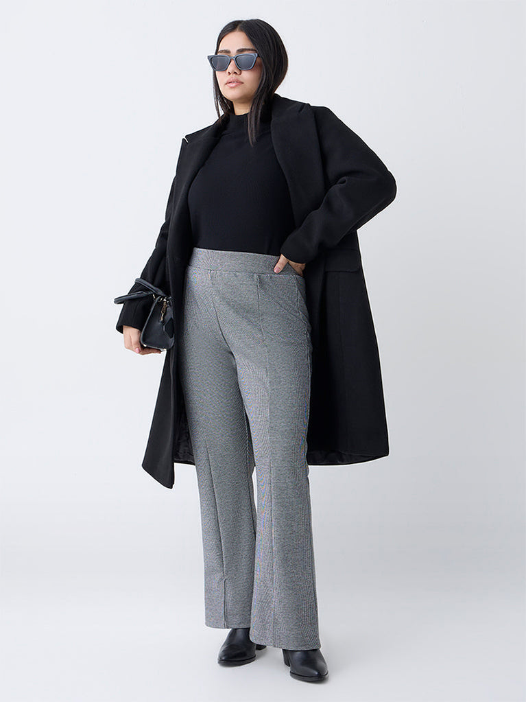 Gia Grey Checkered High-Rise Bootcut Trousers