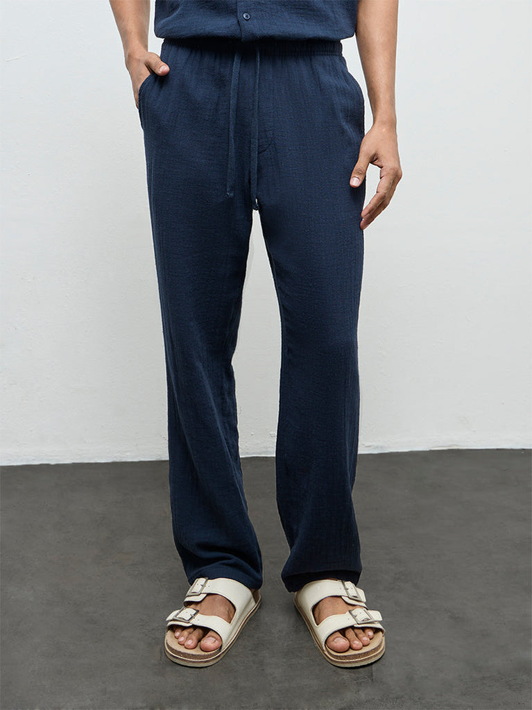 Keep things effortless with these navy chinos from ETA, designed to balance comfort and structure. Made from a cotton-rich fabric in a relaxed fit, they come finished with an elasticated drawstring waistband and side pockets, making them a reliable choice for everyday wear.