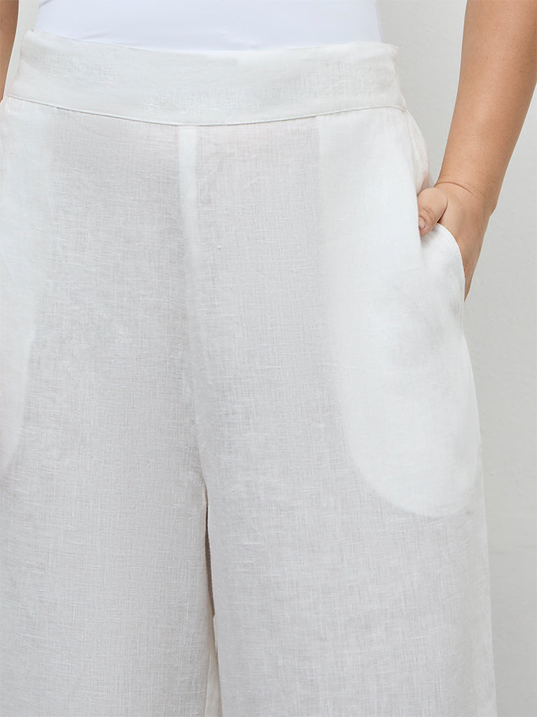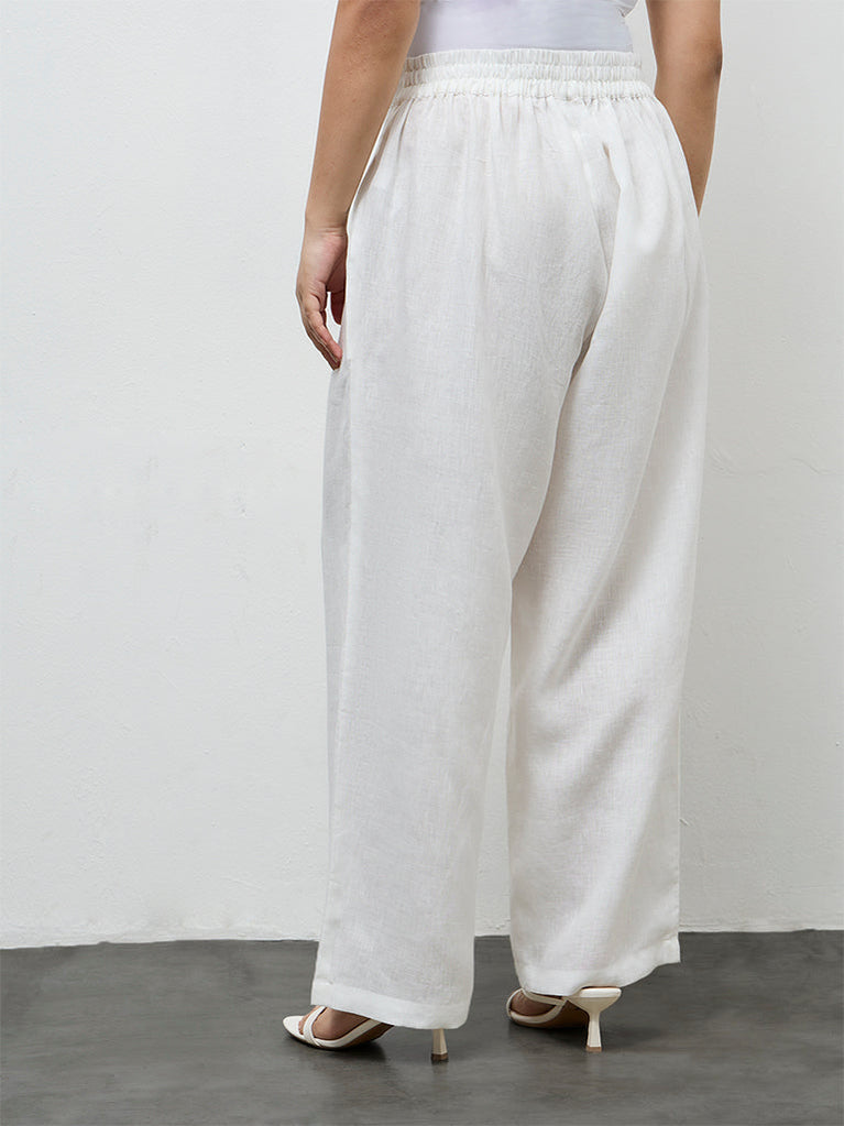 Diza presents these white ethnic pants woven from sumptuous lightweight fabric which provides an all-day breathable feel. The elasticated back offers adaptive ease, while functional side pockets enhance their everyday utility. A streamlined essential that completes ethnic ensembles with quiet structure.