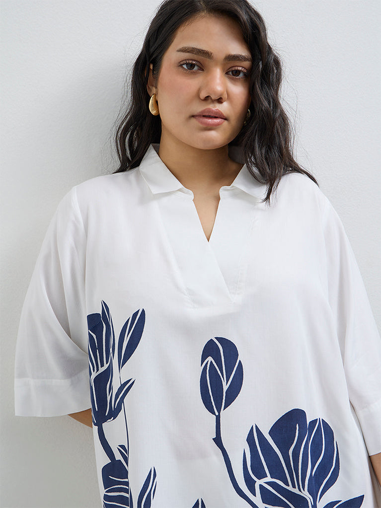 Effortless elegance for everyday wear defines this white tunic from Diza. Featuring striking floral prints, it is crafted from a high-quality fabric offering a super soft feel on the skin. The high-low silhouette carries a collared and three-quarter sleeves, presenting a well-balanced piece for effortless ethnic looks.