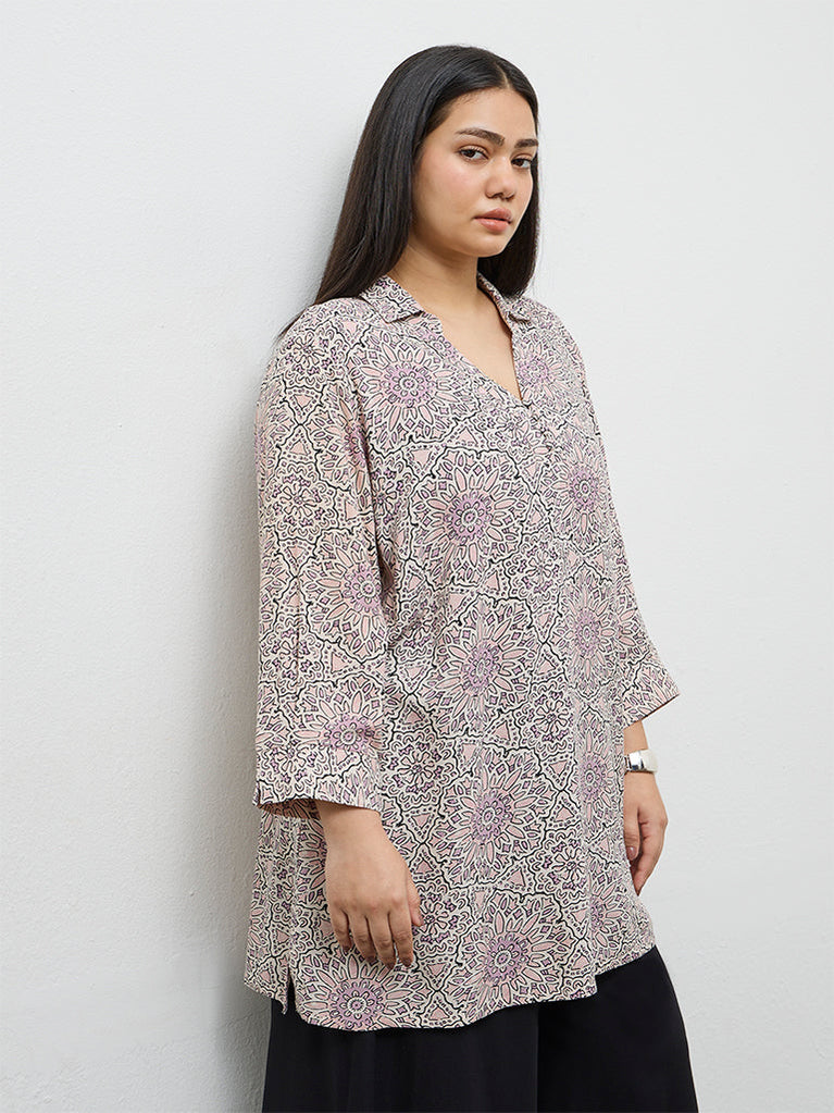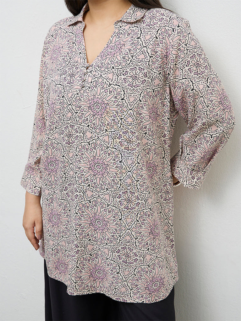 This pink tunic from Diza is crafted from a lightweight fabric that keeps you comfortable through the day. A combination of patterns add a gentle ethnic charm to a balanced silhouette. A collared neck, brief button placket, and three-quarter sleeves complete the design with a well-considered finish.