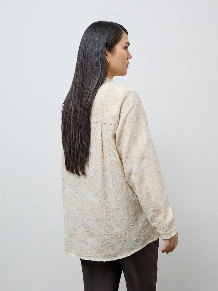Float through off-duty moments in this beige shirt from Gia, adorned with subtle floral embroidery that adds quiet charm. Made from a breathable fabric, it’s styled with a collar flowing into a concealed button placket and full sleeves, delivering a polished silhouette perfect for weekend outings or travel days.
