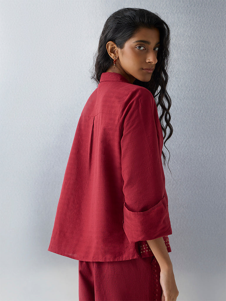 Infused with a bohemian charm, this red shirt from Bombay Paisley is crafted from breathable cotton that keeps you at ease through the day. Delicate embroidery lends an artisanal touch, while the spread collar and button-down front add structure to its relaxed silhouette. Finished with graceful bell sleeves, it strikes the perfect note between laid-back elegance and everyday individuality.
