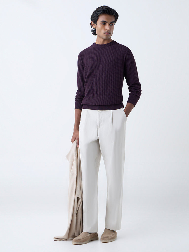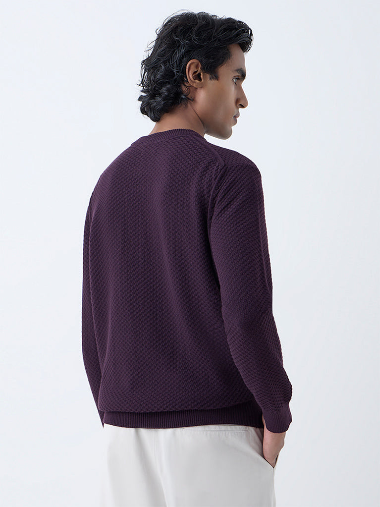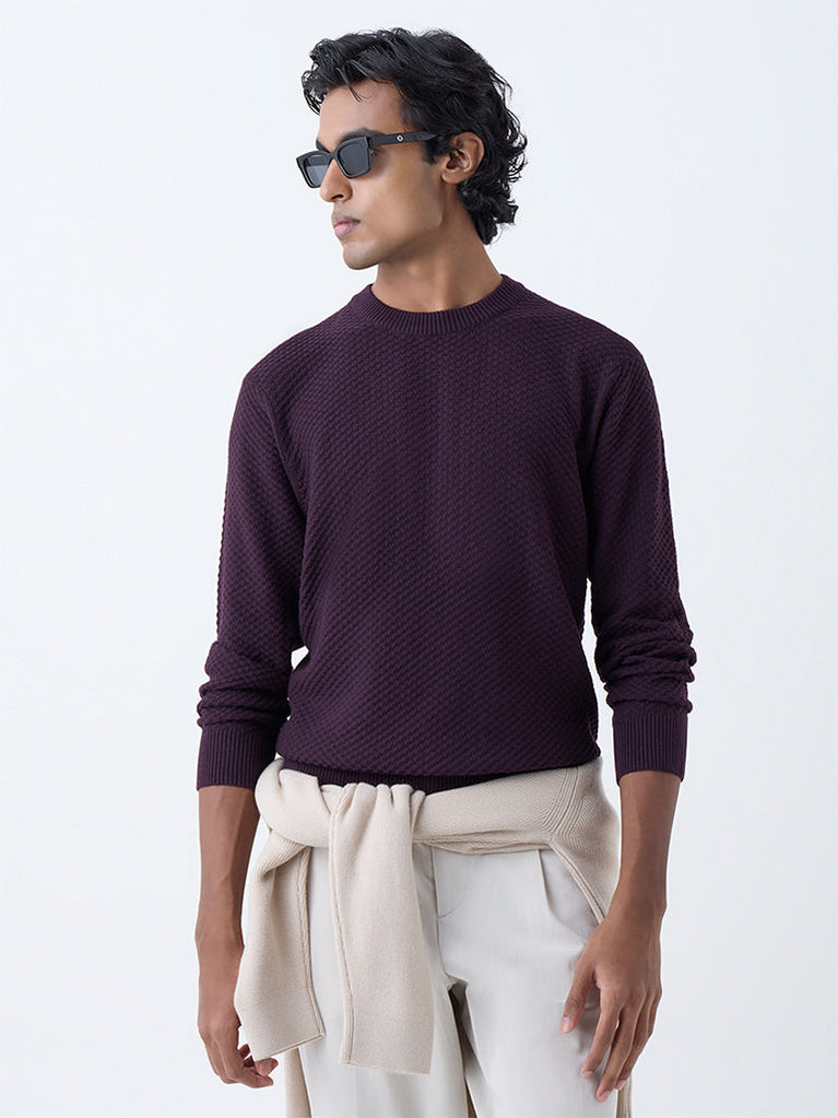 Ascot Wine Knit-Textured Relaxed-Fit Cotton-Blend Sweater