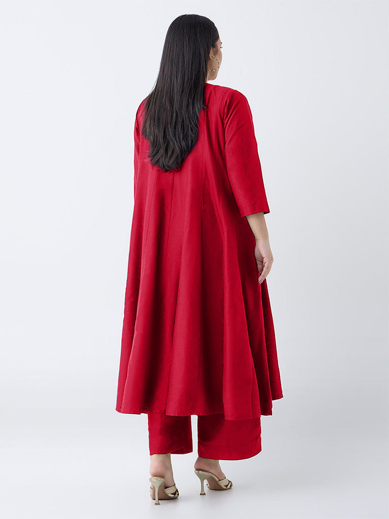 Diza Red Floral Embroidered Anarkali Kurta