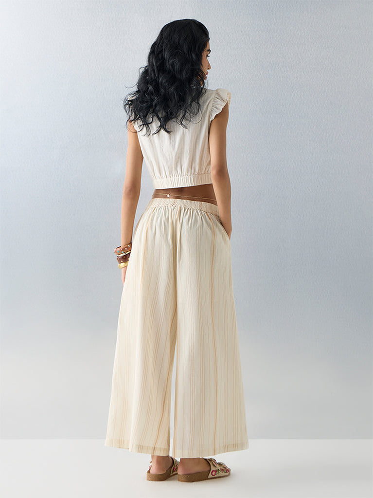 Bombay Paisley Light Beige Striped Cotton-Blend Palazzos