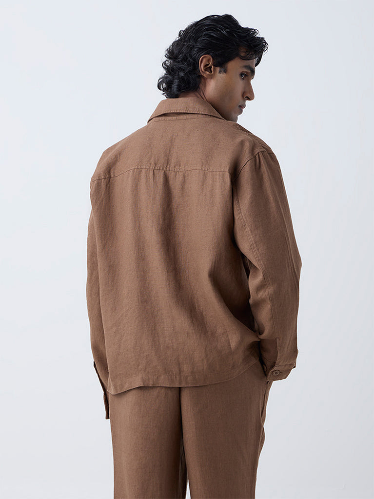 Ascot Khaki Solid Relaxed-Fit Linen Jacket