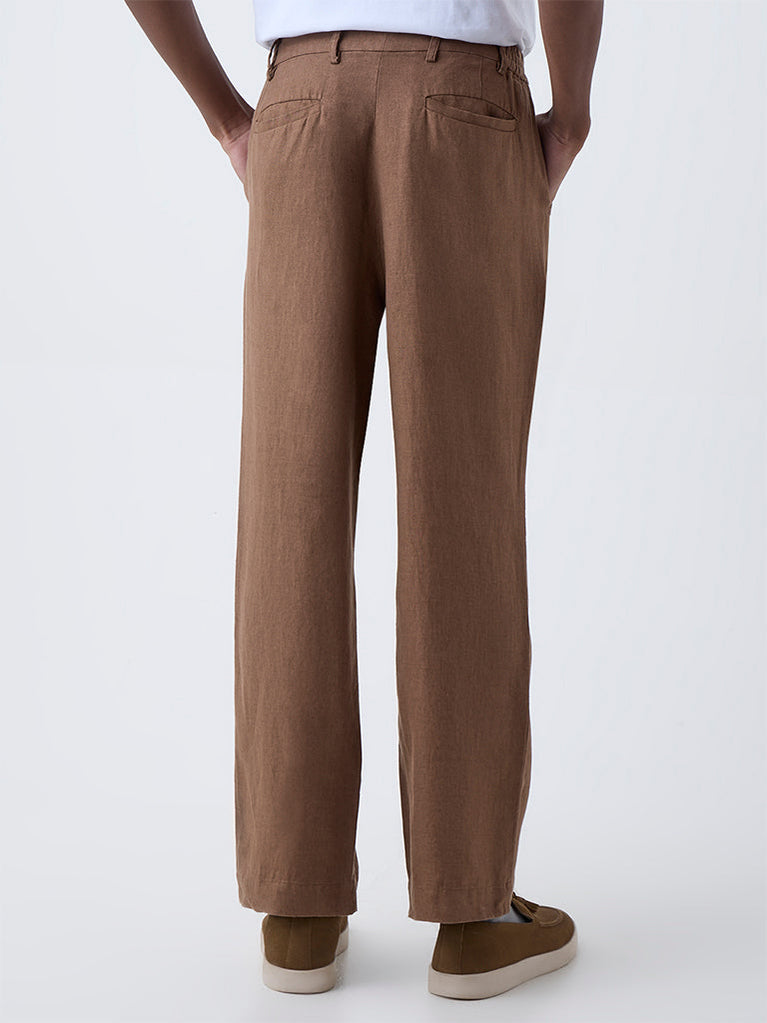 Ascot Khaki Solid Relaxed-Fit Mid-Rise Linen Trousers