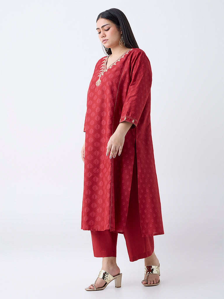 Diza Red Shell Embroidered A-Line Kurta