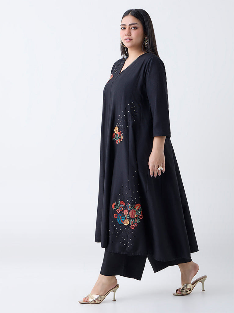 Diza Black Floral Embroidered Anarkali Kurta