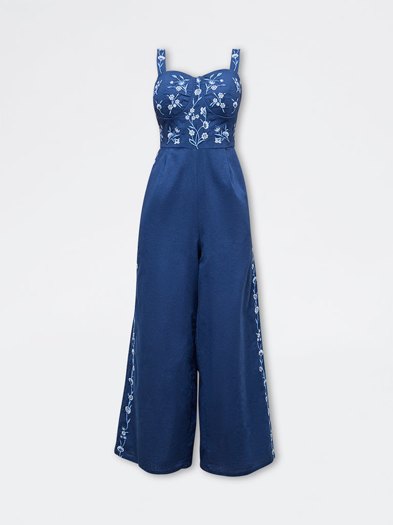 Bombay Paisley Blue Embroidered Cotton Jumpsuit