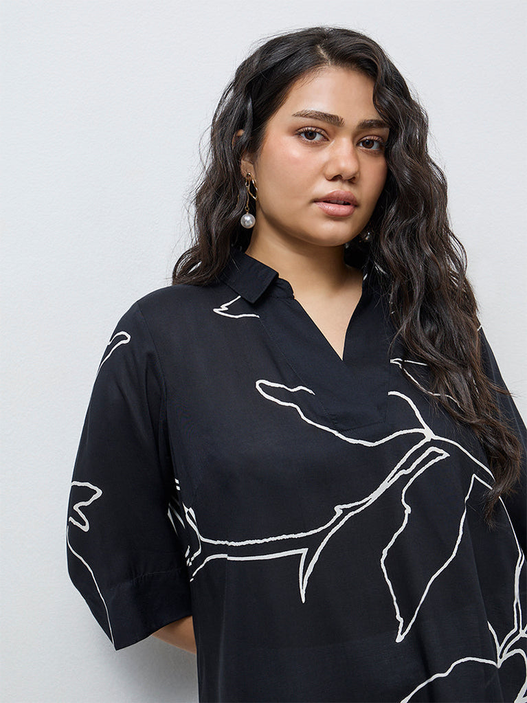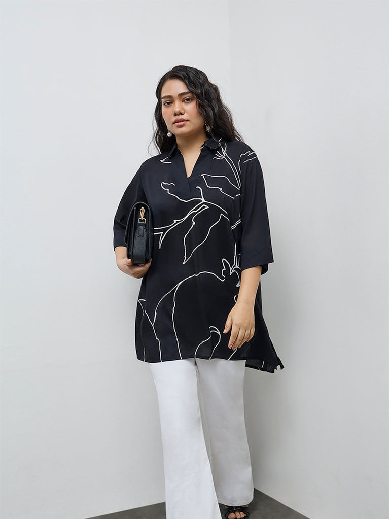 Diza Black Printed High-Low Tunic