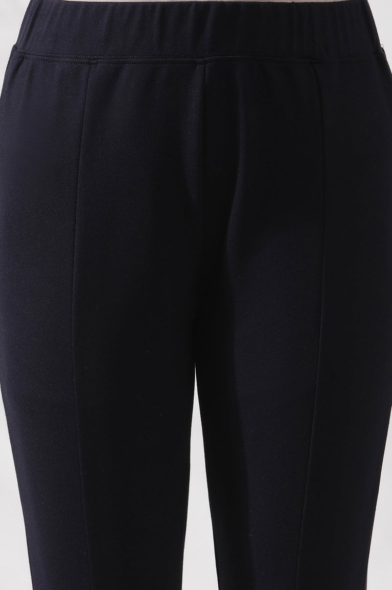 Crafted for the modern woman, these blue cotton lycra tights combine effortless style with unmatched comfort. The solid pattern and skinny fit create a sleek silhouette, while the elasticated waistband ensures a secure and flexible fit. Designed with a mid-rise and ankle-length finish, these tights are perfect for casual outings, yoga sessions, or office wear. Pair them with a kurta or a chic top for a versatile look that transitions seamlessly from day to night.