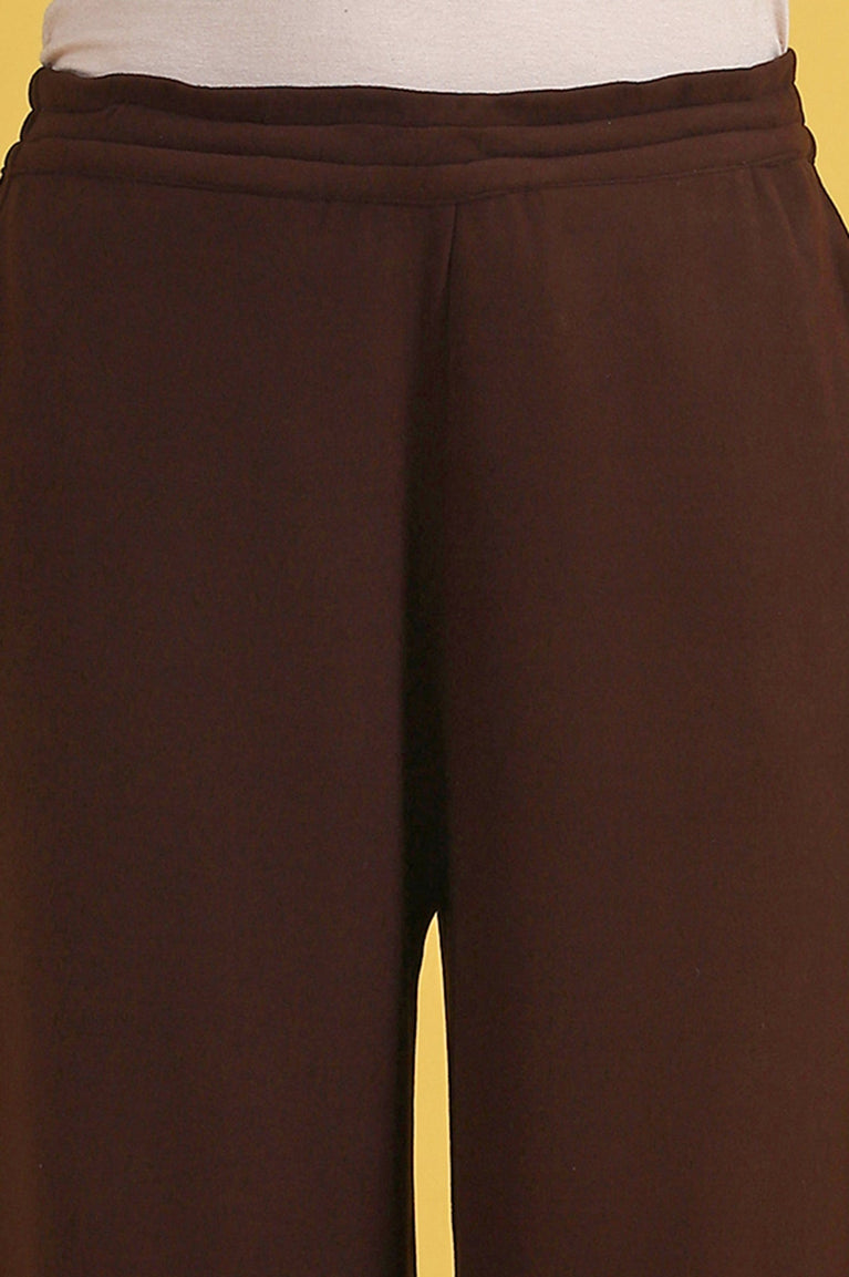 Brown Solid Cashmere Ankle Length Wide Leg Parallel Pants