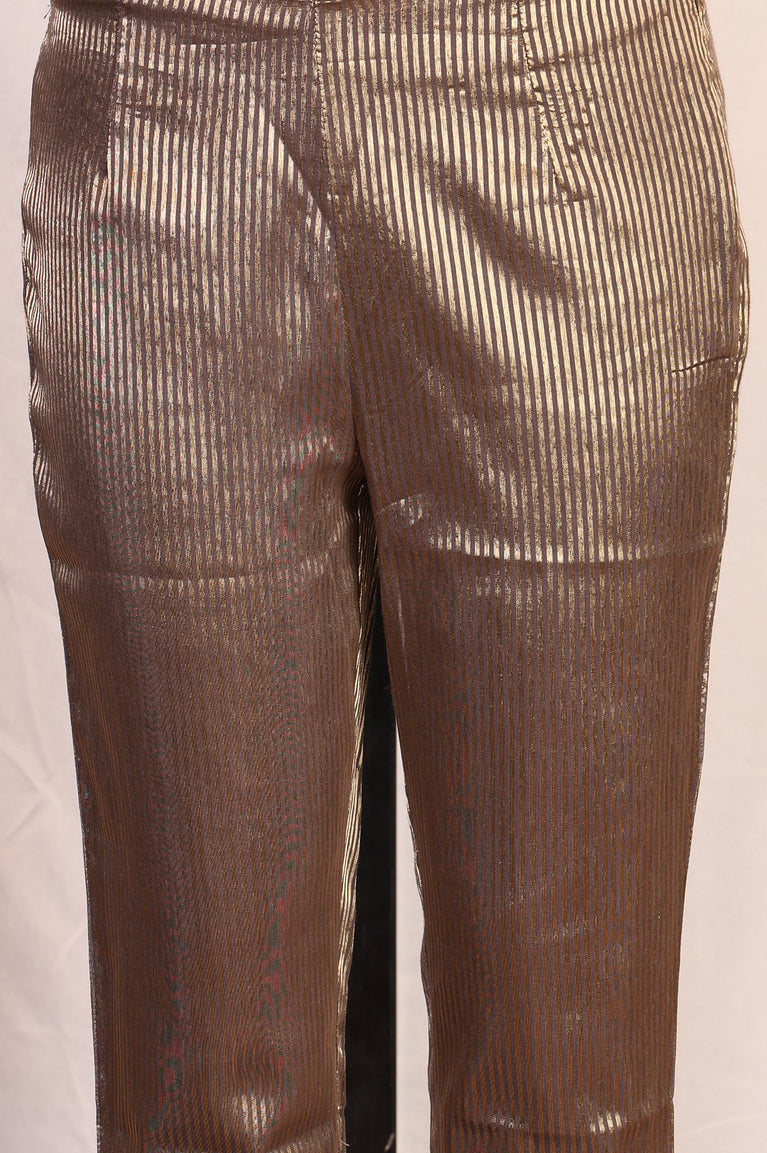 A sophisticated brown kurta set crafted from luxurious jacquard fabric, adorned with intricate embroidery and paired with matching straight pants. The zari-bordered dupatta adds a festive touch, making this ensemble perfect for traditional celebrations. Designed with a round neckline and three-quarter sleeves, this below-knee-length kurta offers a straight silhouette for effortless elegance. Ideal for festive gatherings, this set combines comfort and style seamlessly.