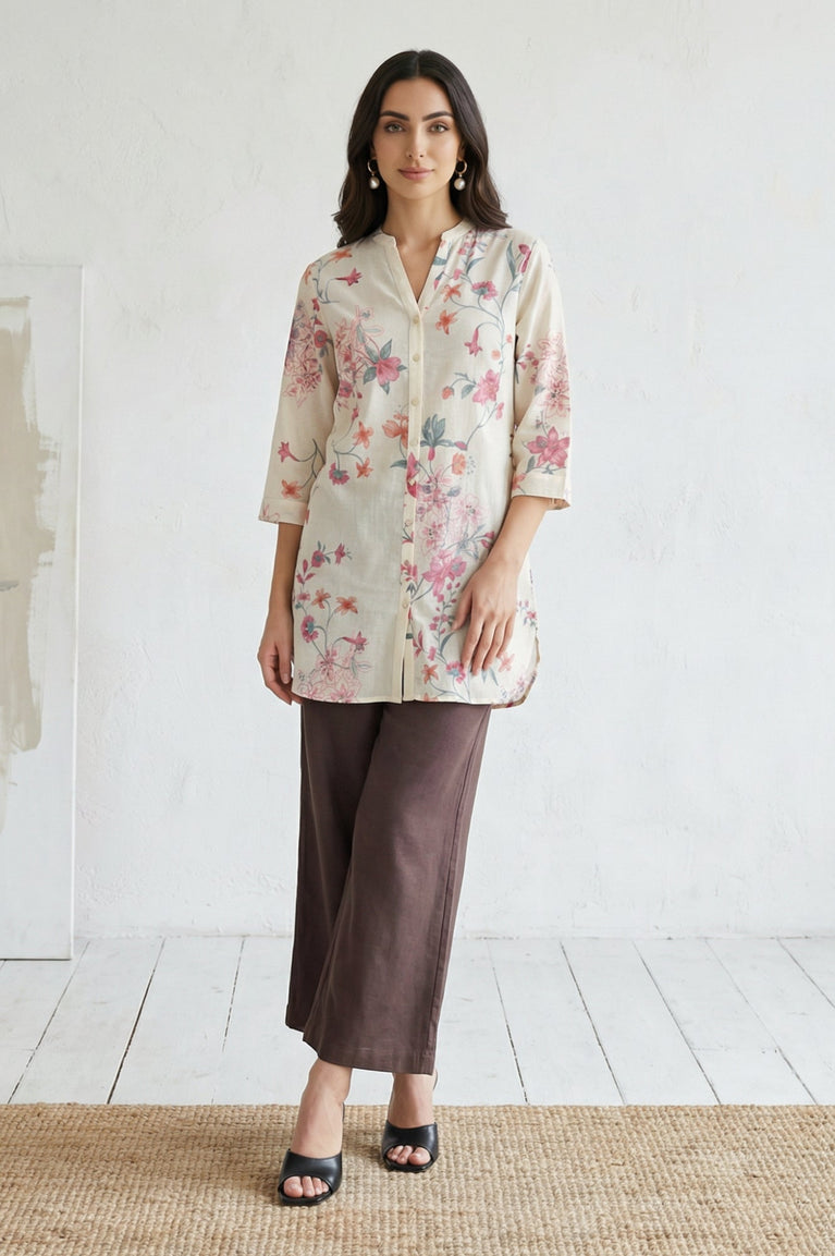 Beige Floral Printed Straight Tunic