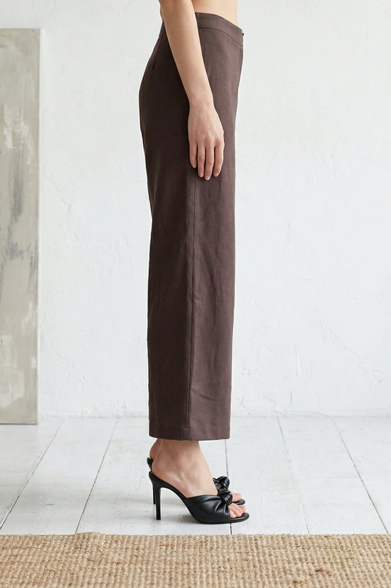 Brown Solid Wide Leg Ankle Length Pants