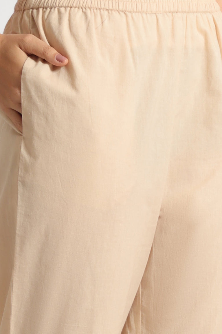 A versatile style essential, this beige straight kurta in cotton opens at the front for effortless layering. Its clean neckline and side slits add ease, while the muted hue makes it a perfect canvas for multiple looks—dress it up with palazzos or down with jeans.