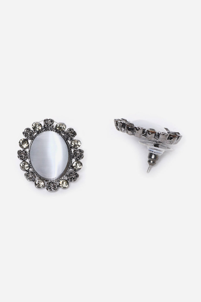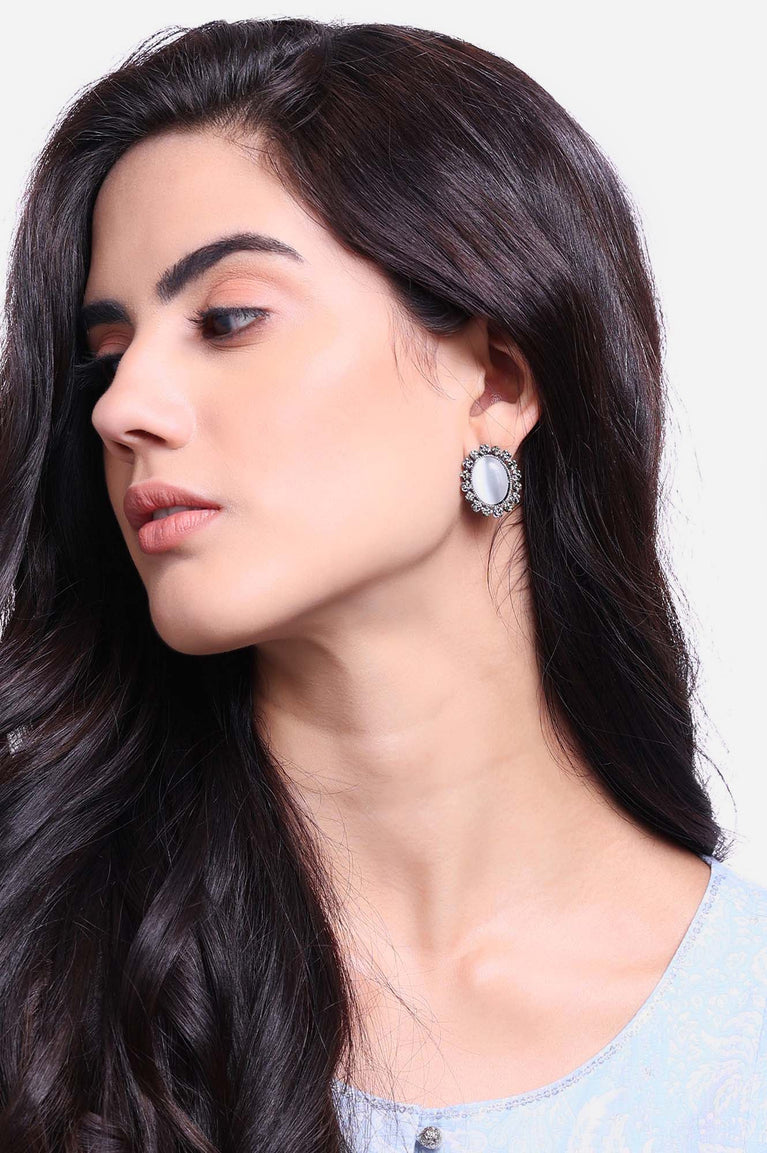 timeless green and blue combo of studs and hoop earrings with factetd stones detailing