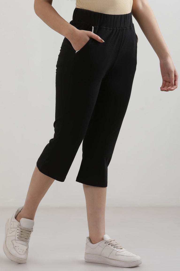 Black Solid Straight Fit Cotton Culottes With Slip On Closure