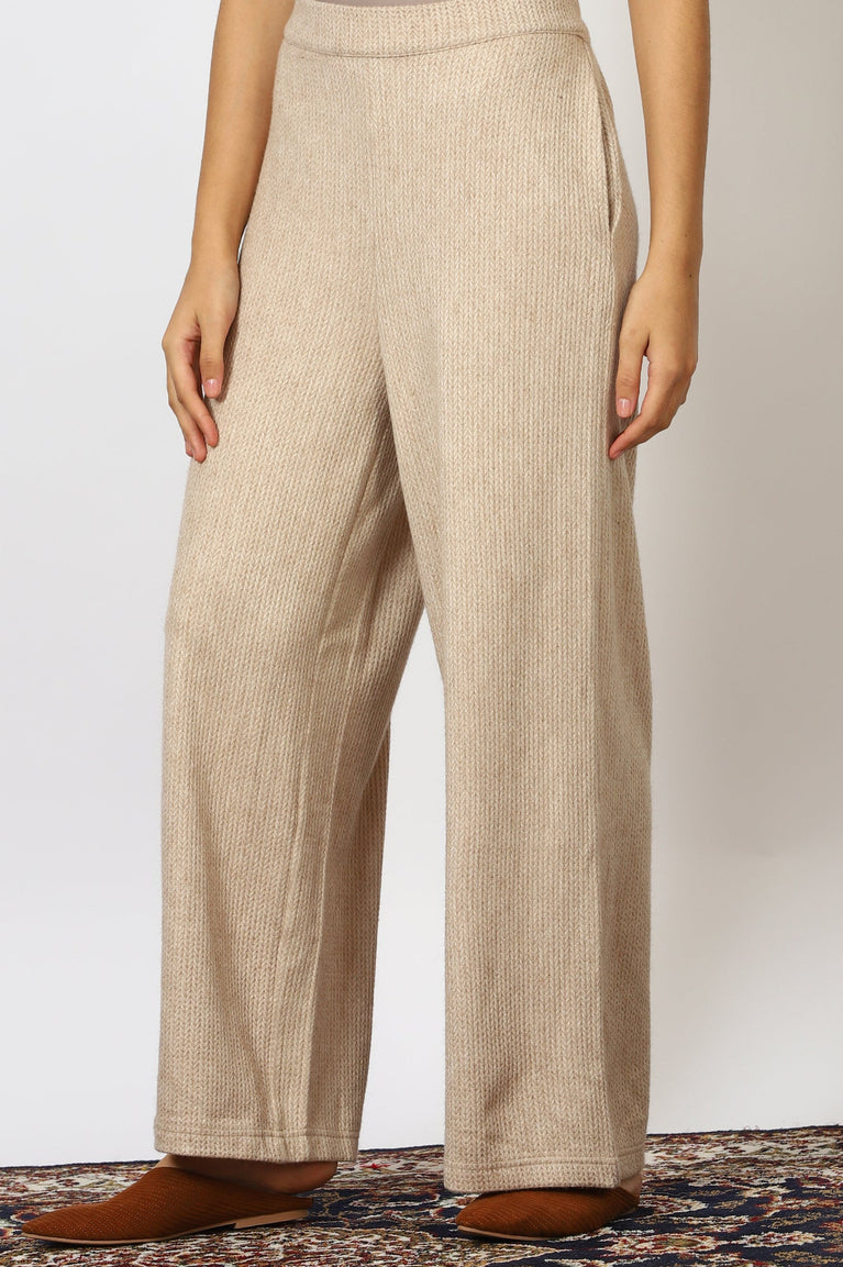 Beige Solid Boot-cut Knit Palazzo with Elasticated Waist