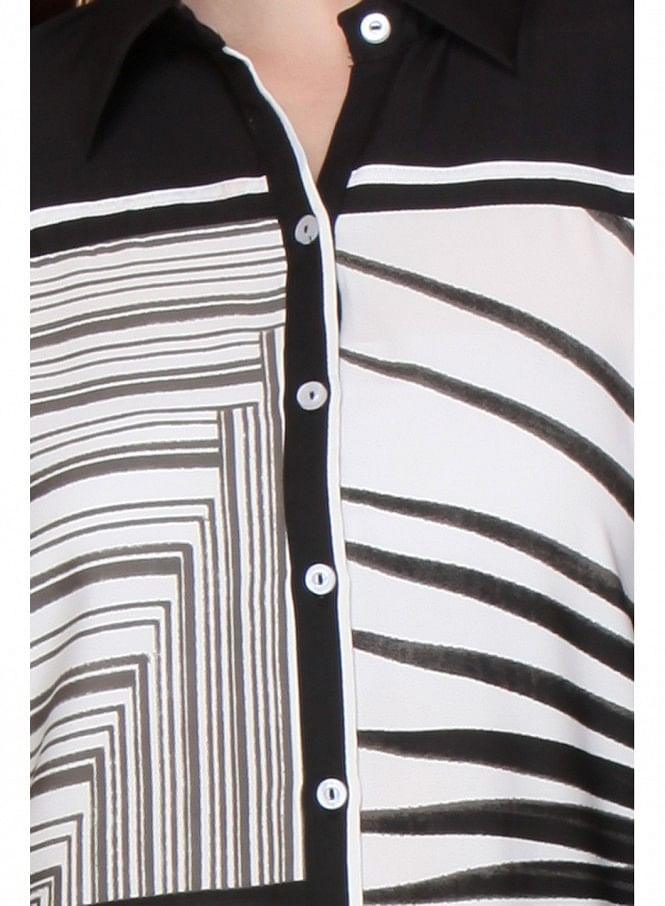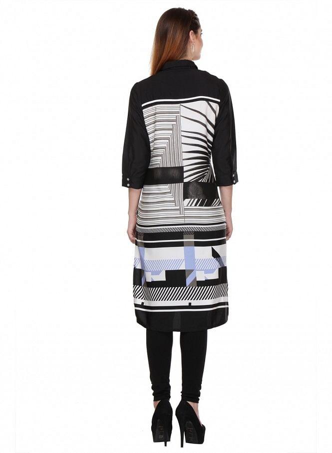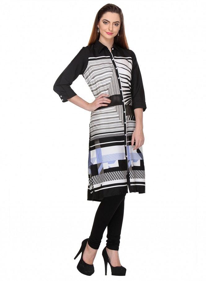 Black Printed Mandarin Neck 3/4 Sleeve kurta with 43" Length